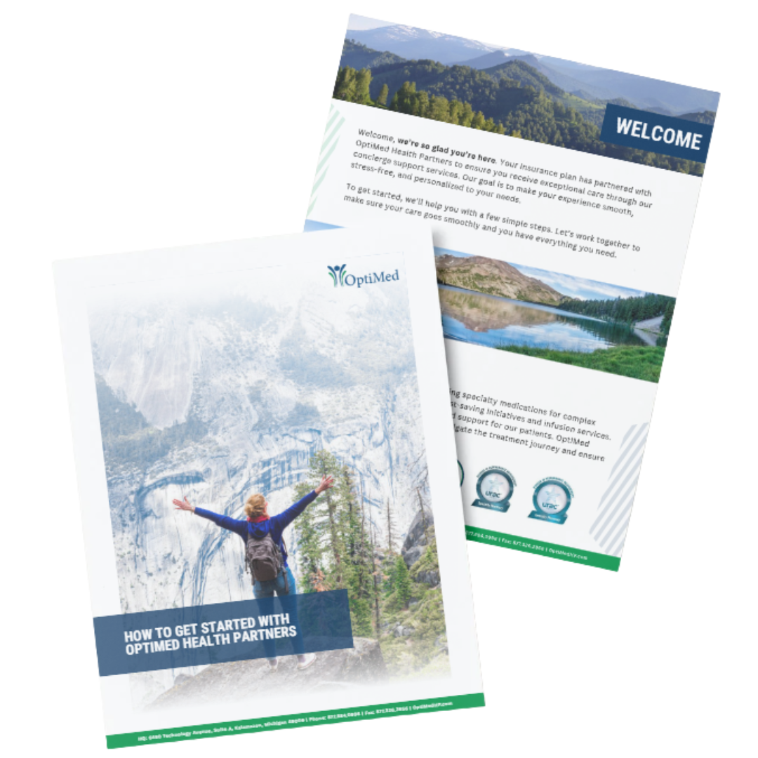 This booklet includes everything you need to know about your care with OptiMed-from getting started to sharing your medical history and more. It also explains the support services we offer, like help with medication costs and infusion coordination. It’s a helpful step-by-step guide to ensure your treatment is smooth and personalized.