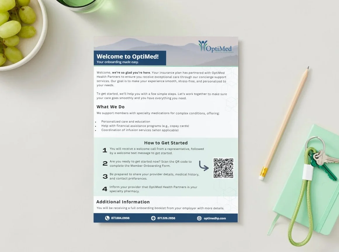 This one-page overview walks you through what to expect as a new OptiMed member. It includes how to begin your care, what you’ll need to provide (like your provider’s info), and how to complete the onboarding form. It’s a fast way to understand how we support you with your specialty medications.